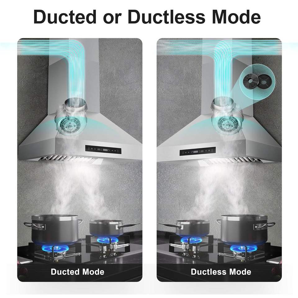 เครื่องดูดควันติดผนังขนาด 30 นิ้ว 900 CFM แบบมีท่อ/ไม่มีท่อ ปรับเปลี่ยนได้ ควบคุมด้วยระบบสัมผัสและเซ็นเซอร์ตรวจจับการเคลื่อนไหว ทำจากสแตนเลส