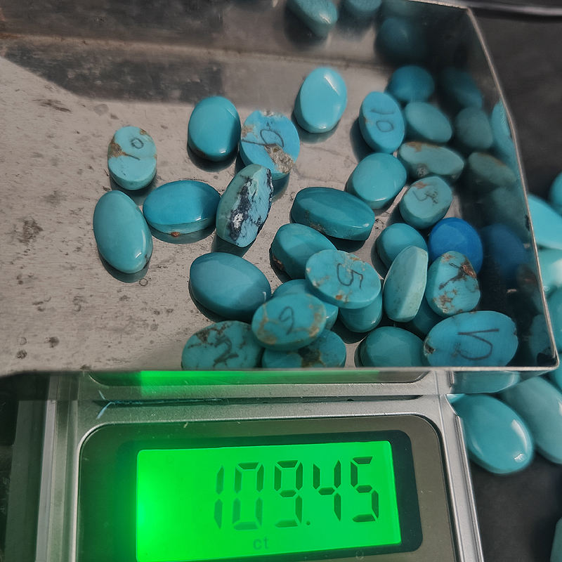 30ชิ้นสีเทอร์ควอยซ์ Arizona ธรรมชาติ9.5x8มม. ถึง14.5x10มม. ทรงวงรี Cabochon 109.45 CTS ล็อตด้วยคุณภาพจาก USA สีเทอร์ควอยซ์162.6 $