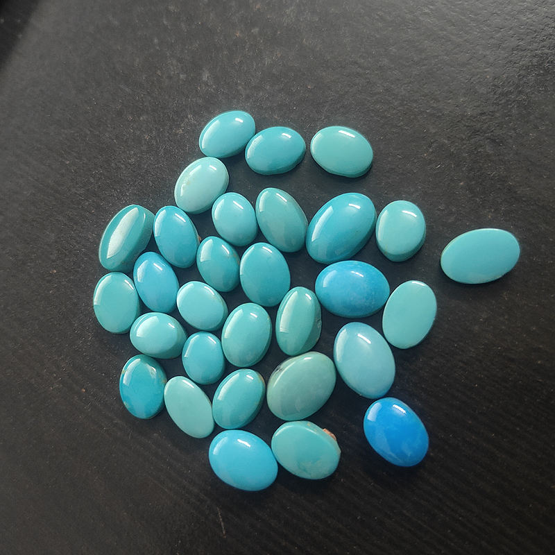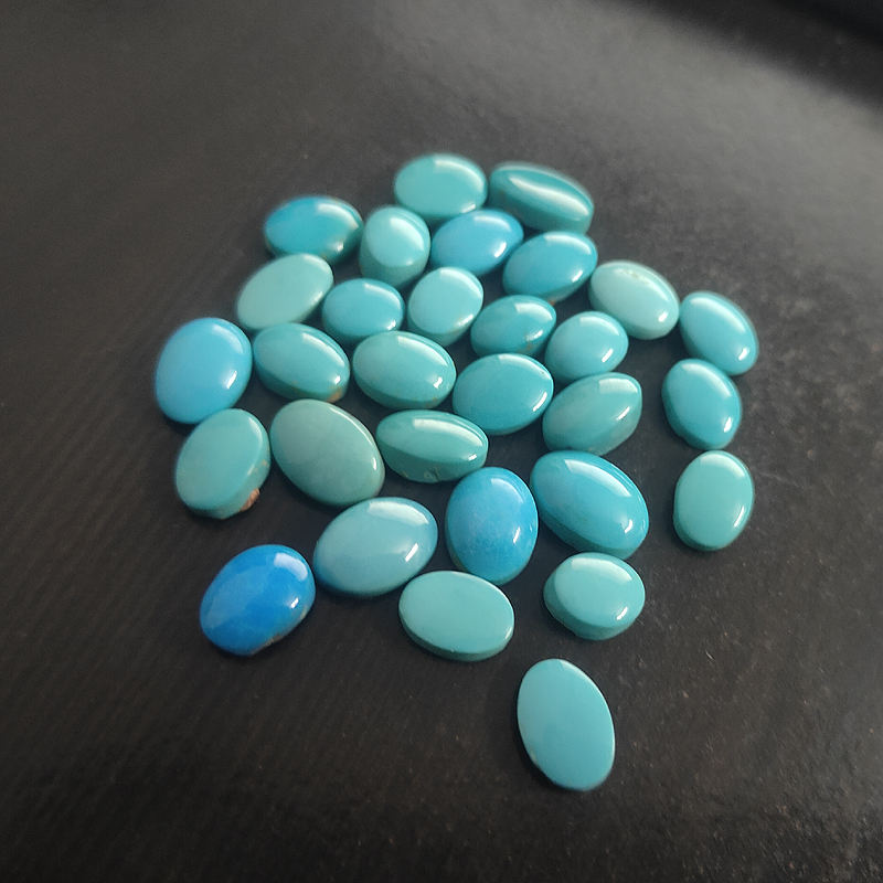 เทอร์ควอยซ์ธรรมชาติ ขนาด 9.5x8 มม. ถึง 14.5x10 มม. ทรงรีแบบคาโบชอง (ล็อต)
