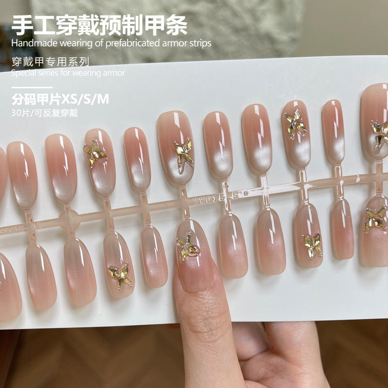 30ชิ้นเล็บที่สวมใส่ได้3D ระดับไฮเอนด์ทำด้วยมือพลอยเทียมรูปแมวตาหวานเย็นบริสุทธิ์ปรารถนาสไตล์ถอดปลายเล็บได้