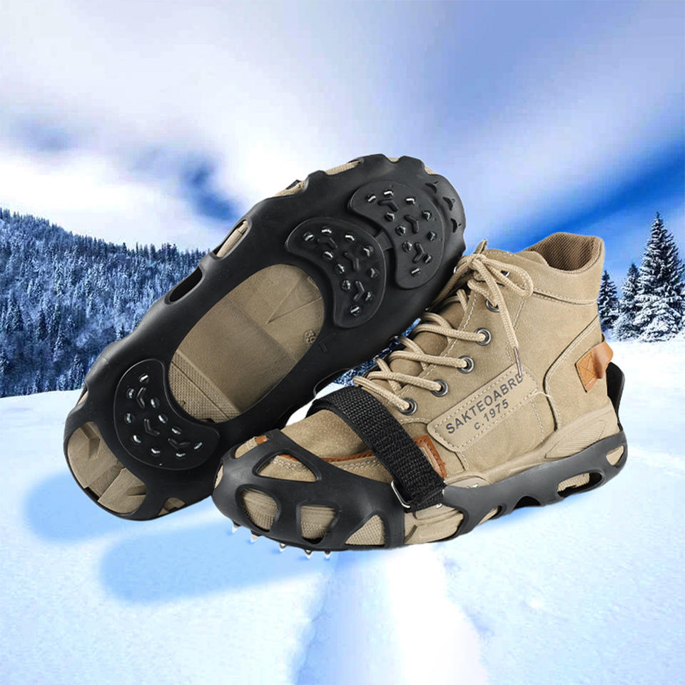 ที่ครอบรองเท้ากันลื่น 30 ฟัน ทำจากยางซิลิโคน ป้องกันการลื่นบนหิมะและน้ำแข็ง เหมาะสำหรับการปีนเขาและเดินป่าในฤดูหนาว