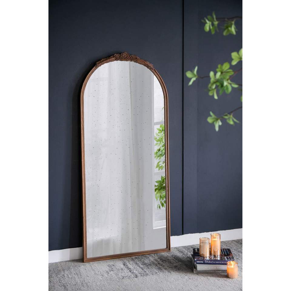 กรอบกระจกโบราณสีน้ำตาลขนาดใหญ่30 "" X 65 "ดีไซน์กุหลาบแกะสลักด้วยมือสำหรับตกแต่งผนัง-สำหรับห้องนั่งเล่นห้องน้ำทางเข้า