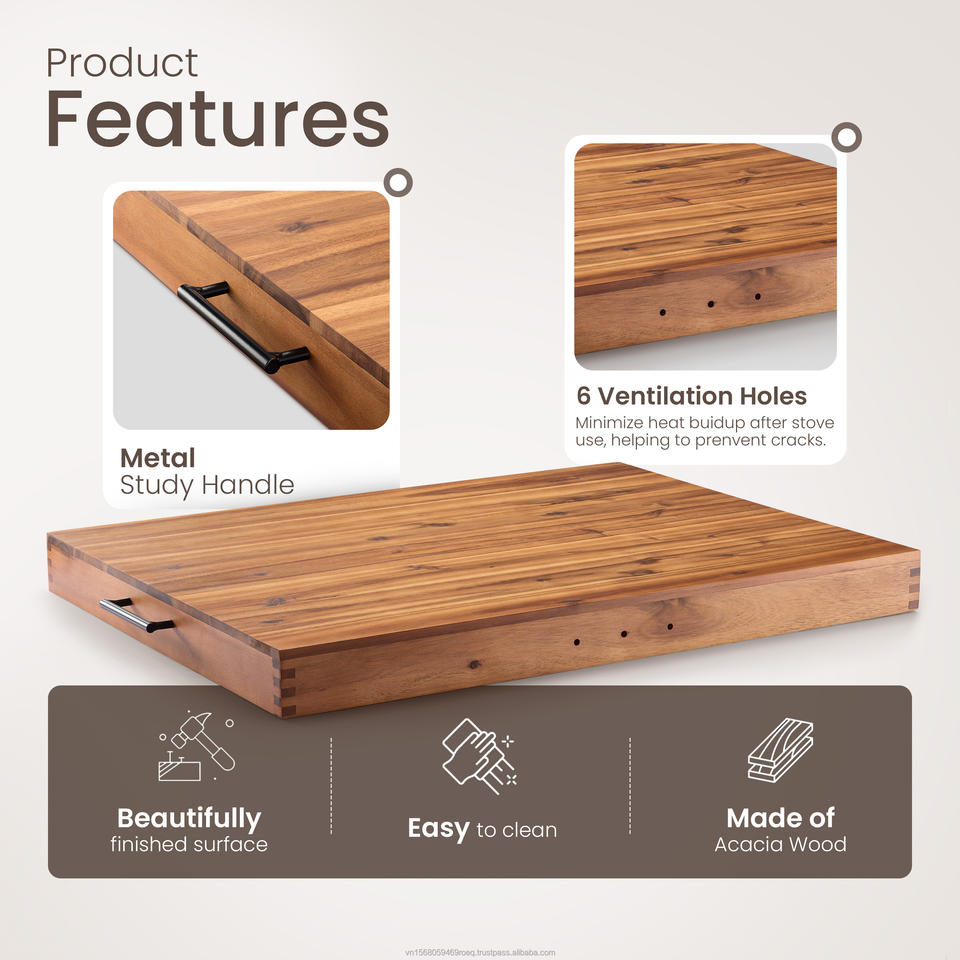 แผงบะหมี่ขนาดใหญ่30นิ้วทำจากไม้อะคาเซียเขียงแบบใช้แก๊สและเตาไฟฟ้าพร้อมที่ปิดเตาถาดเสิร์ฟ