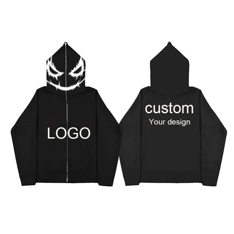 3D ฮู้ดแบบรูดซิปได้แบบเต็มใบหน้าโลโก้