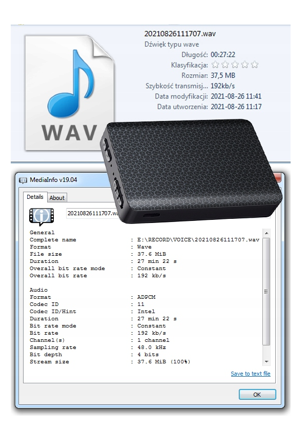 การบันทึก:การบันทึก ADPCM 192Kbit, การบันทึกเสียงที่เปิดใช้งานเสียงเสริม 50DB
