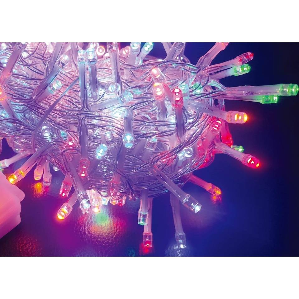 ไฟคริสต์มาส LED หลากสี 300 ดวง ใช้แบตเตอรี่ สายไฟใส 15+0.3 เมตร