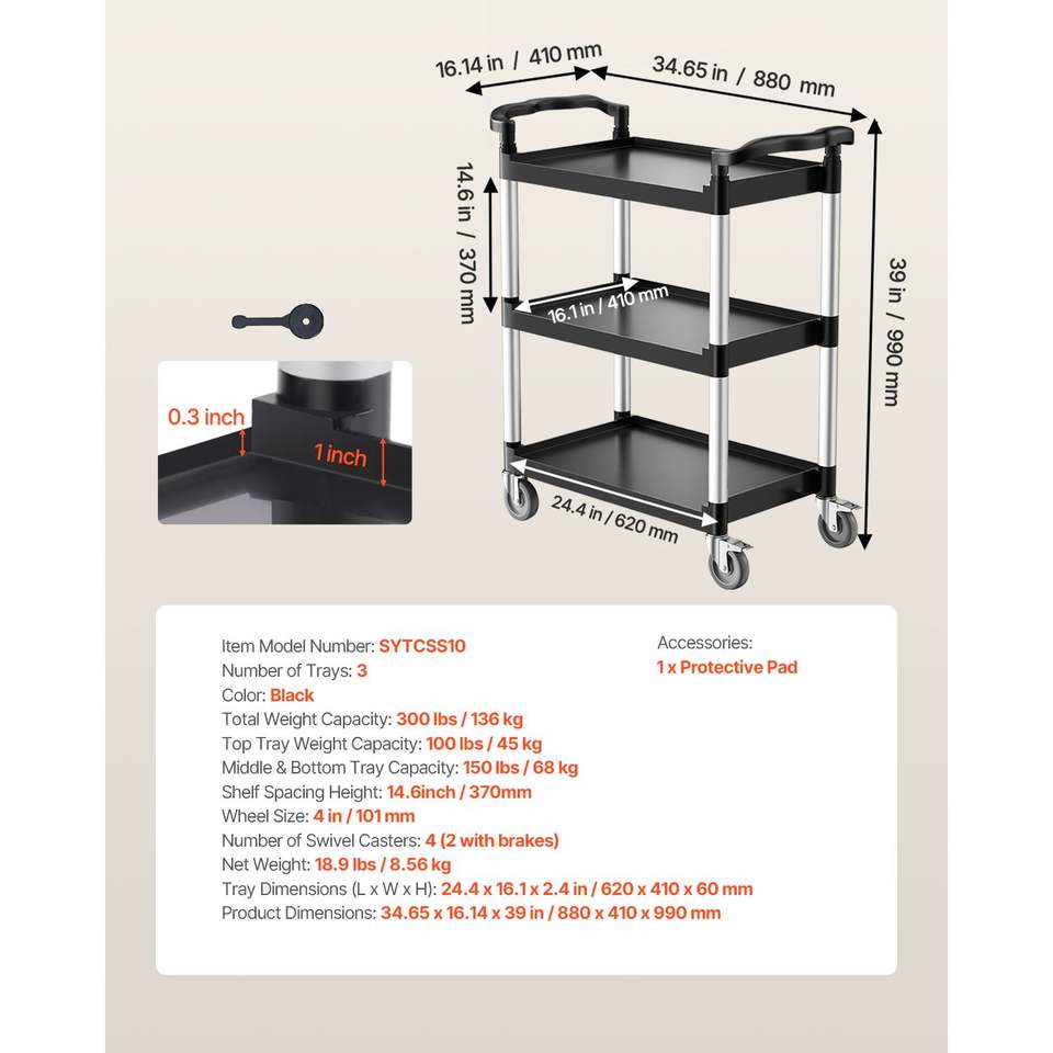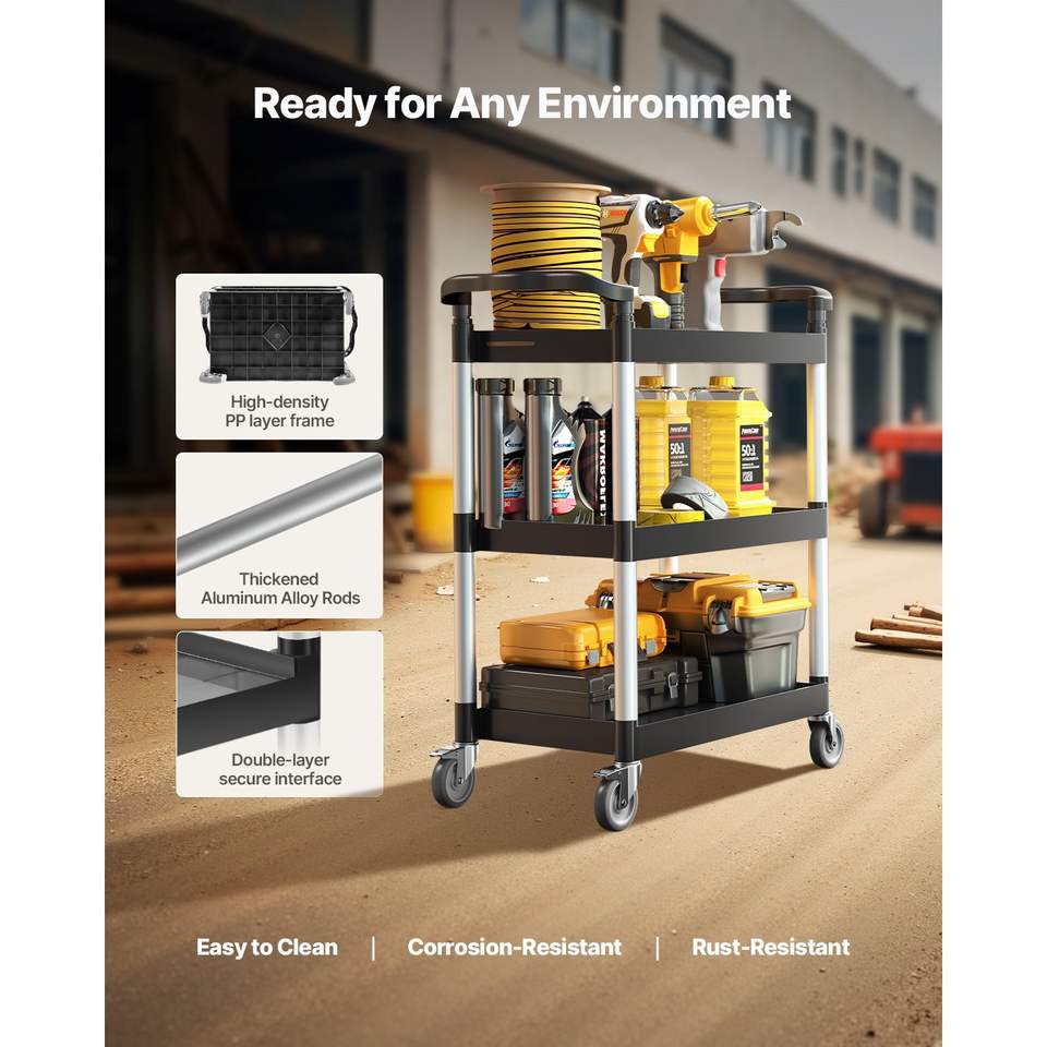 รถเข็นพลาสติกอเนกประสงค์ 3 ชั้น รับน้ำหนักได้ 300 ปอนด์ ขนาด 24.4 x 16.1 นิ้ว ล้อหมุนได้ 360 องศา พร้อมเบรก 2 จุด รุ่น D0100XU6I9V