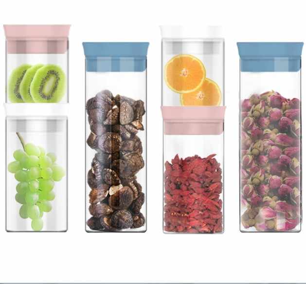 push type borosilicate glass vacuum food storage container