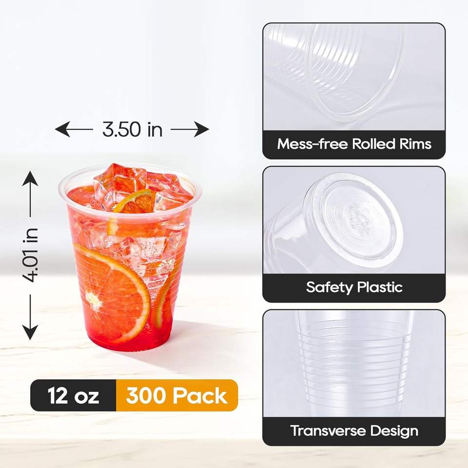 แก้วพลาสติกใสแบบใช้แล้วทิ้ง 300 ชิ้น แก้วน้ำใสสำหรับใช้ในบ้าน โรงเรียน สำนักงาน งานอีเว้นท์ งานจัดเลี้ยง ตัวอย่างเครื่องดื่ม