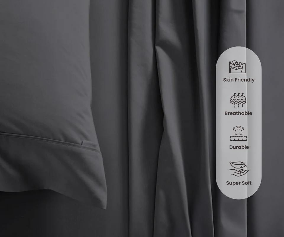 ชุดผ้าปูที่นอนขนาดคิงไซส์ 300 เส้นด้าย 4 ชิ้น สีเทาหรูหรา มีจำหน่ายในขนาดที่กำหนดเองจากซัพพลายเออร์อินเดีย