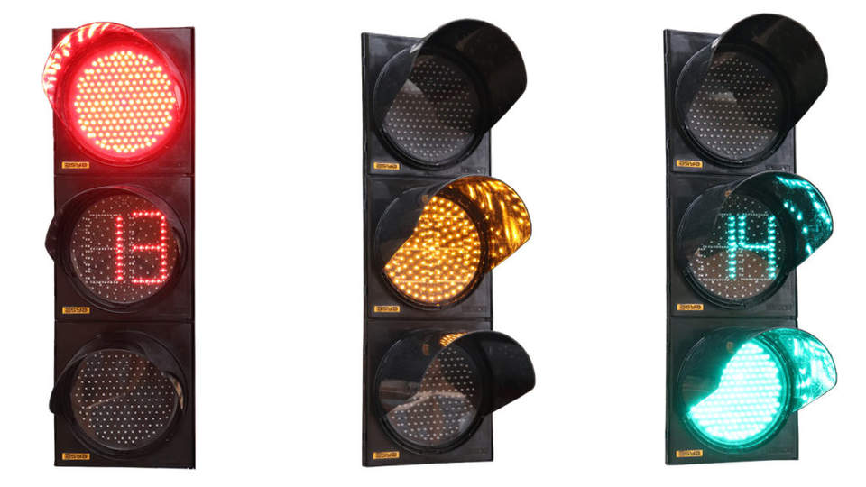 ไฟจราจรขนาด 300 มม. พร้อมโมดูลนับถอยหลังสีเหลือง หัวสัญญาณ LED วัสดุโพลีคาร์บอเนต UV 220V AC