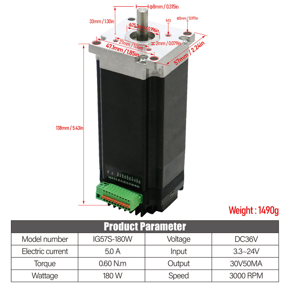 ชื่อผลิตภัณฑ์:เซอร์โวมอเตอร์แบบรวม DC NEMA 23 180W