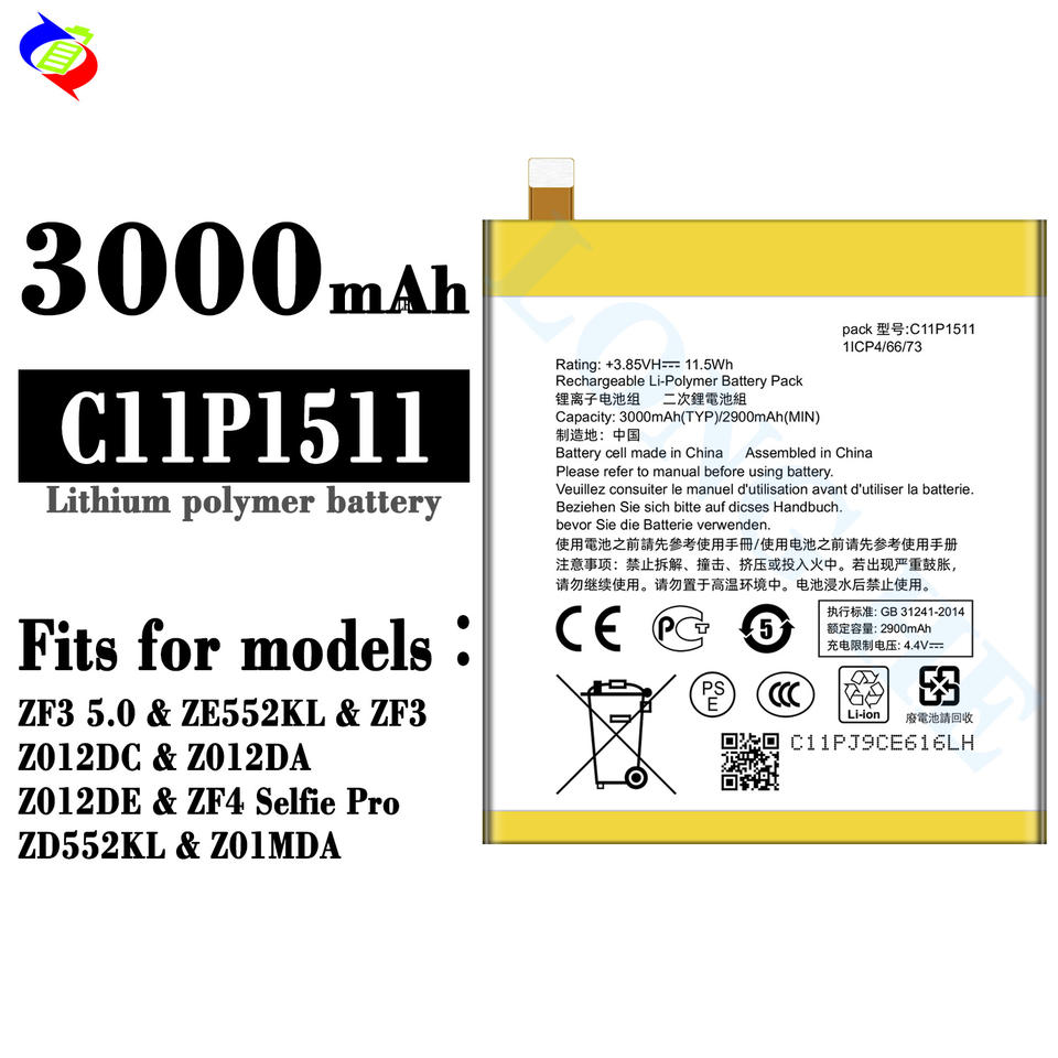 3000mAh C11P1511 เซนโฟน 3 5.0 2016 ZE552KL Z012DA Z012DC แบตเตอรี่โทรศัพท์มือถือสำหรับ ASUS ZF3 5.0 แบตเตอรี่
