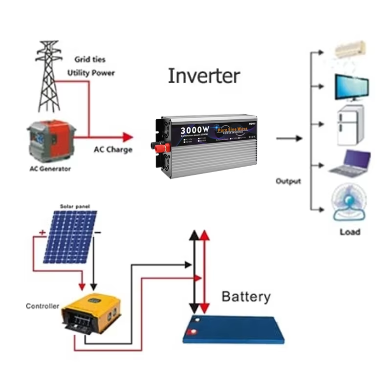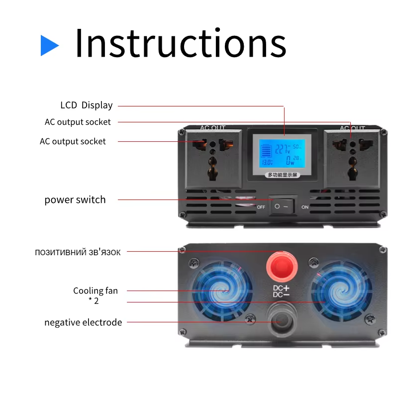 อินเวอร์เตอร์คลื่นไซน์บริสุทธิ์ 3000 วัตต์ อินเวอร์เตอร์แปลงไฟ 12 โวลต์ เป็น 110 โวลต์ ตัวแปลงพลังงาน อินเวอร์เตอร์ 24 โวลต์/220 โวลต์ พร้อมหน้าจอ LCD สำหรับอินเวอร์เตอร์