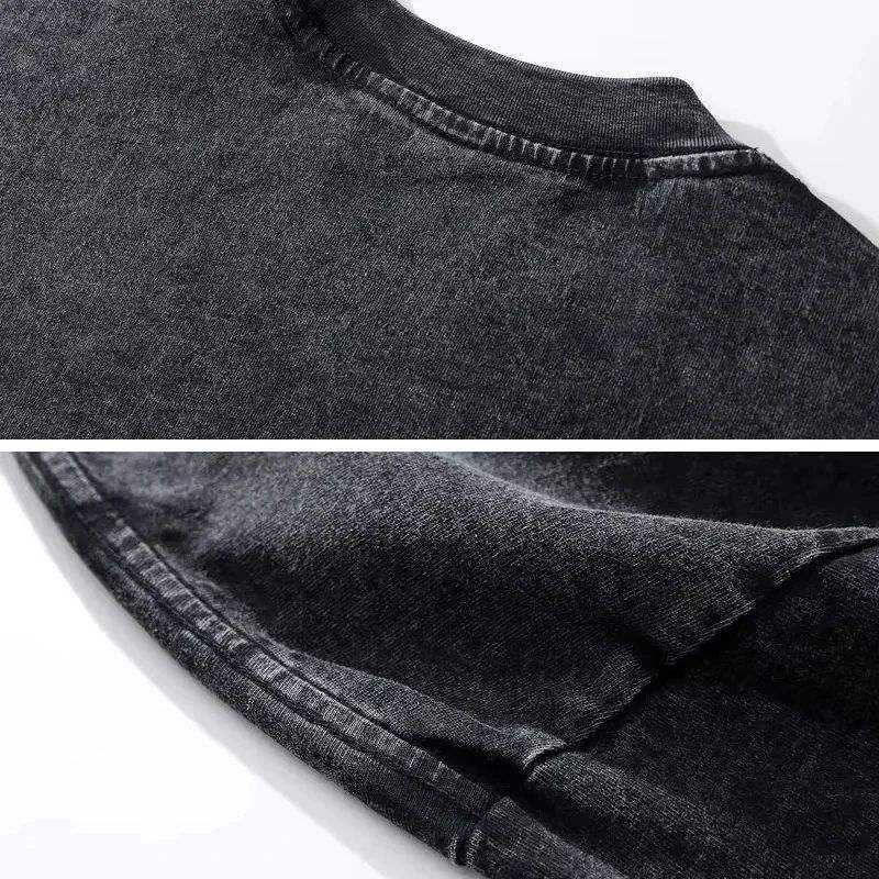 เสื้อยืดโอเวอร์ไซส์ผู้ชาย 300GSM ผ้าฝ้าย 100% สไตล์ฮิปฮอป ทรงหลวม คอกลม ล้างสีแบบแอซิด พิมพ์ลายด้านหลัง พิมพ์ลาย DTG ทั่วตัว