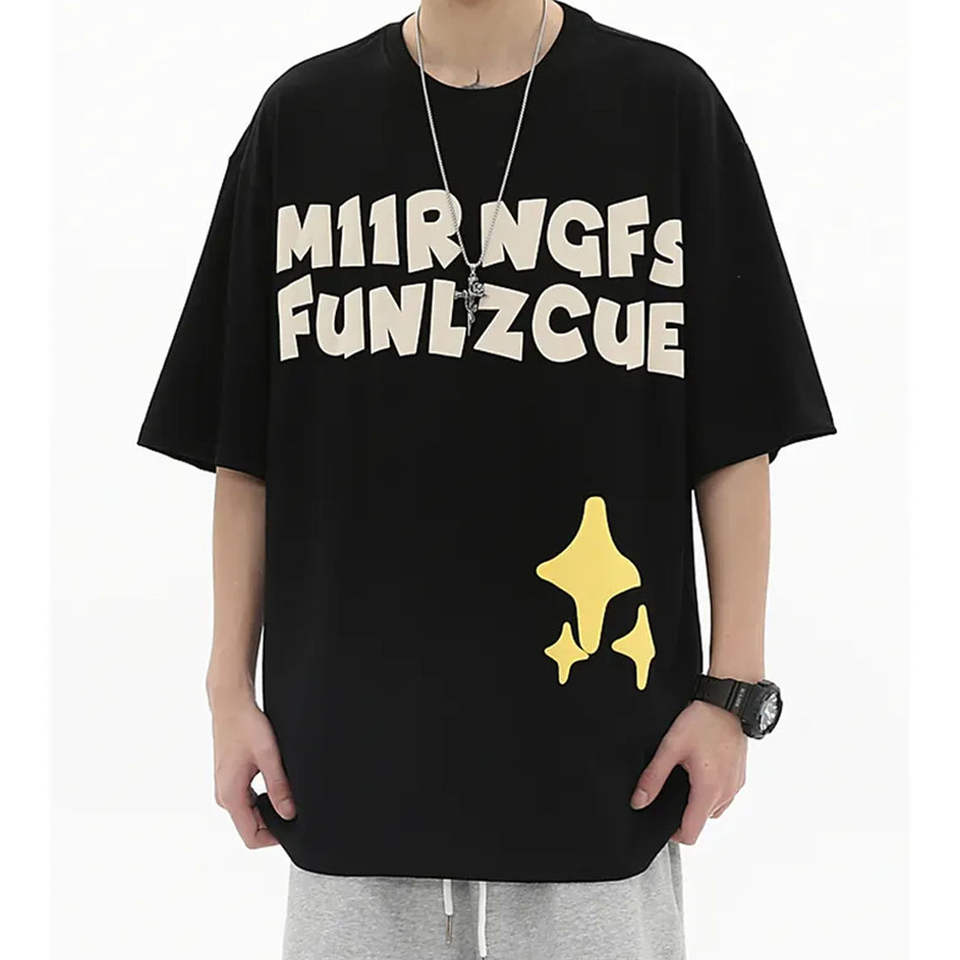 เสื้อยืดโอเวอร์ไซส์ 300GSM ผ้าฝ้ายถัก 100% สำหรับผู้ชาย สไตล์ฮิปฮอป ทรงหลวม คอกลม ล้างสีแบบแอซิดวอช สกรีนลายแบบ DTG เสื้อสตรีทแวร์
