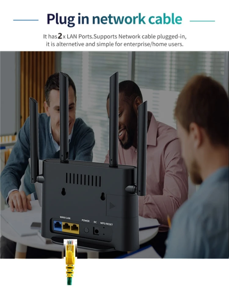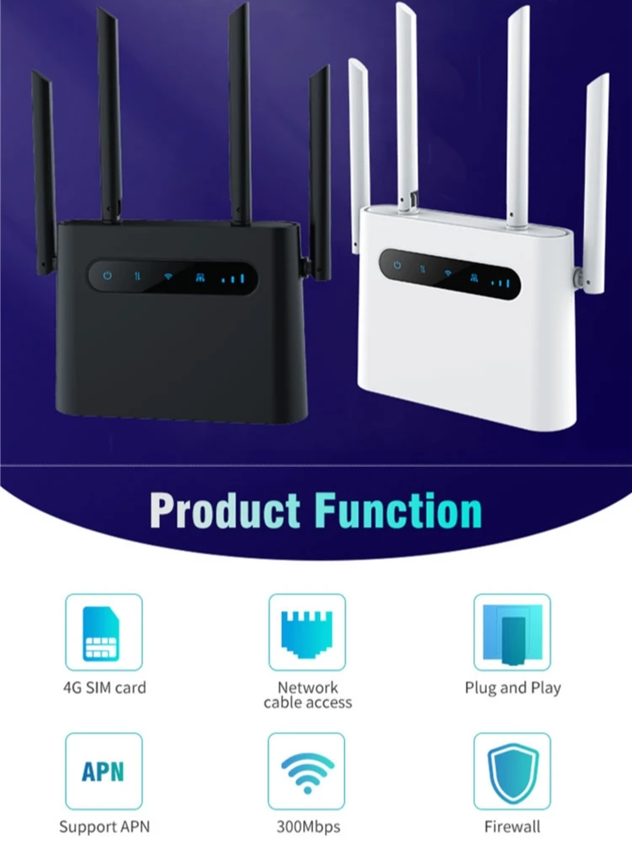เราเตอร์300Mbps พร้อมช่องใส่ซิมการ์ด4G LTE CPE สัญญาณไร้สายเราเตอร์ปลั๊กแอนด์เพลย์ซิมเราเตอร์4เสารับเสาอากาศ