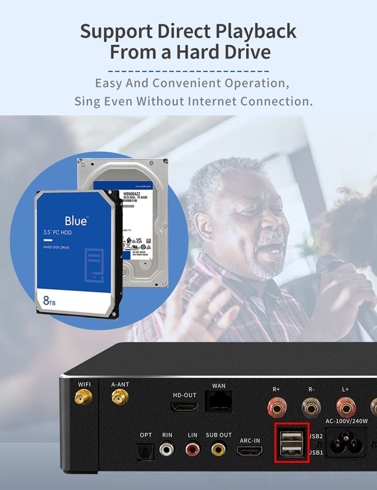 เครื่องขยายเสียงคาราโอเกะในบ้าน300W มี3ช่องไมโครโฟนอินเทอร์เฟซภายนอกแบบมีสายเครื่องขยายเสียงระบบ Android กำลังแรงสูง