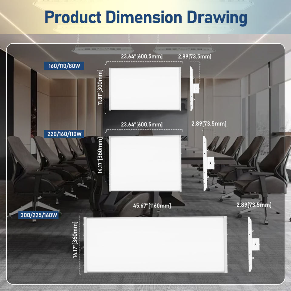 ไฟไฮเบย์ LED แบบเส้นตรง 300W ปรับอุณหภูมิสีได้ ได้รับการรับรอง ETL ตัวโคมทำจากอะลูมิเนียมและพลาสติก สำหรับโรงงาน