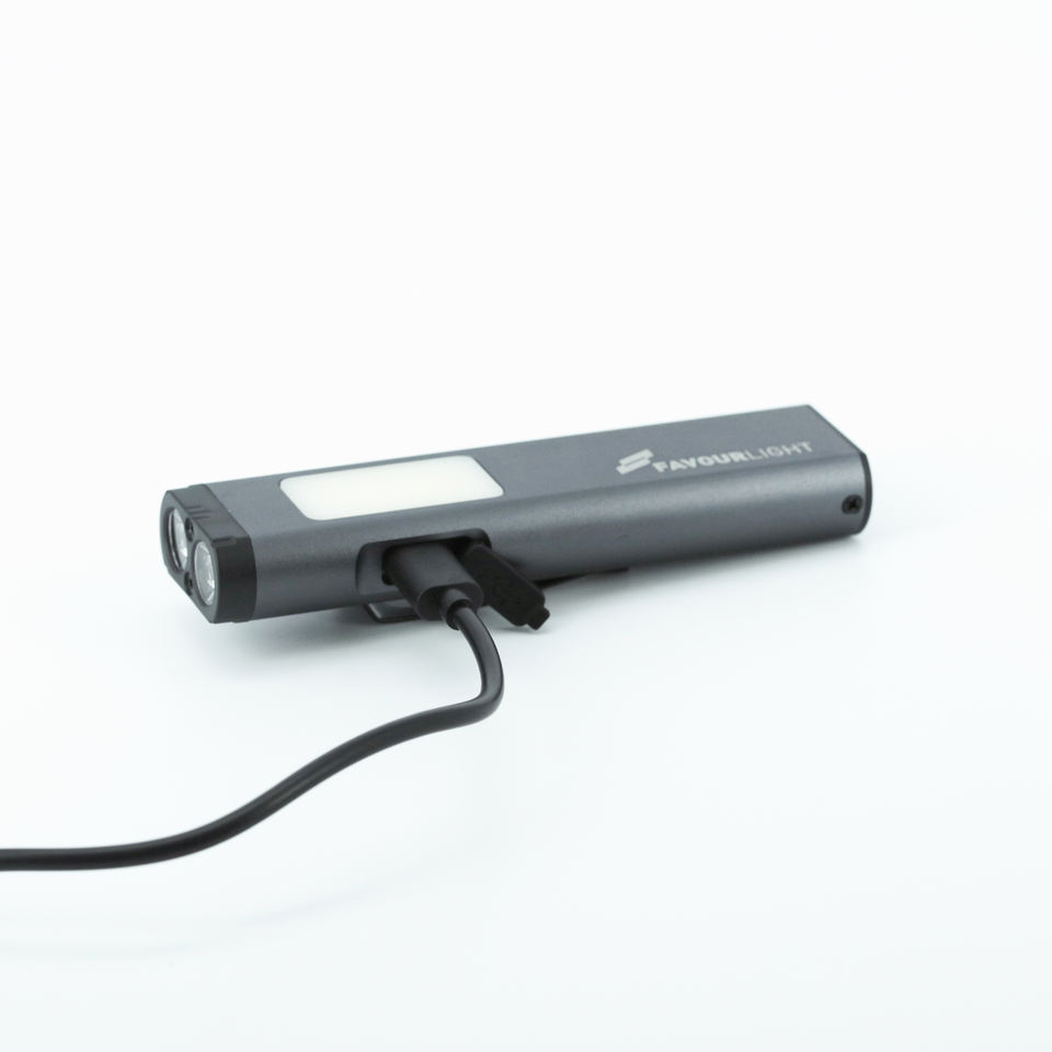 ไฟฉาย LED แบบชาร์จไฟได้ 300 ลูเมน ตัวเรือนอะลูมิเนียมอัลลอยด์ พร้อมไฟ COB/เสียงเตือน กันน้ำระดับ IP65 ชาร์จผ่าน USB-C ฐานแม่เหล็ก ปรับลำแสงได้