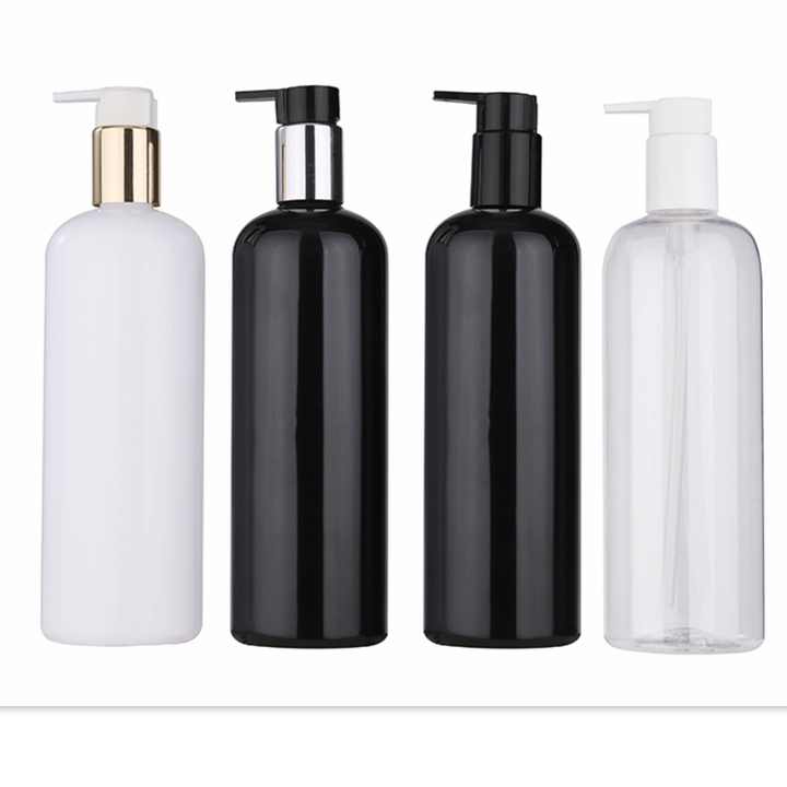 ขวดพลาสติกสีเหลืองอำพันและสีเขียวขนาด 300 มล. 400 มล. 500 มล. ขวด PET สำหรับแชมพู ครีมอาบน้ำ โลชั่น ขวดทรงกลมสำหรับบรรจุภัณฑ์ผลิตภัณฑ์ดูแลผิวพร้อมหัวปั๊ม