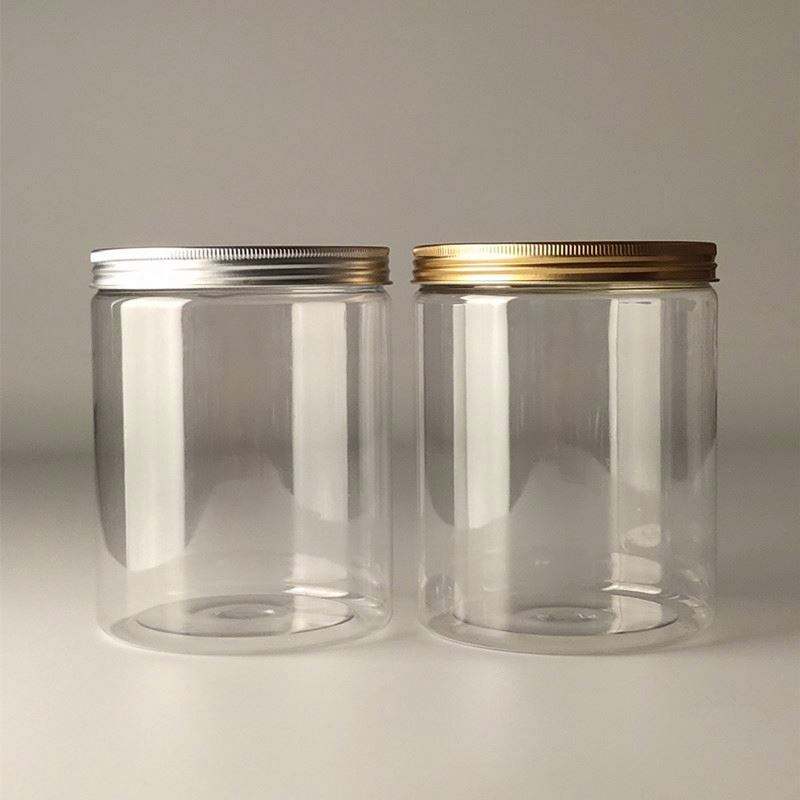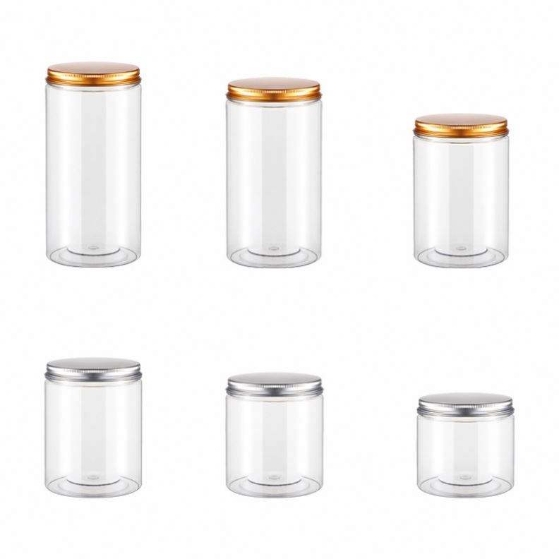 ขวดเก็บของพลาสติก PET ใส ปราศจากสาร BPA ขนาด 300 มล./500 มล./1000 มล. ปากกว้าง พร้อมฝาเกลียวอะลูมิเนียม สำหรับครีมบำรุงผิวและเครื่องสำอาง