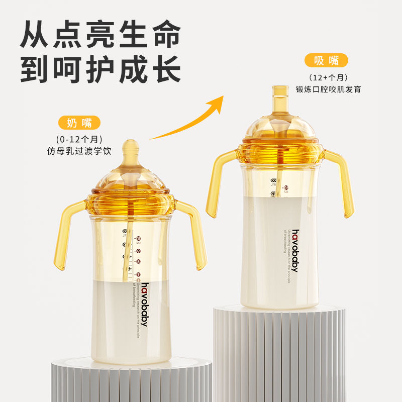 BPA-Free 300ml PPSU ขวดป้อนนมซิลิโคนทรงตรงพร้อมจุกนมสำหรับฝึกดื่ม0-12เดือน