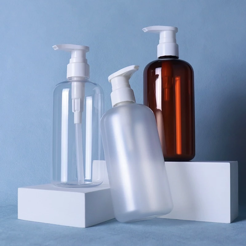 ขวดพลาสติก PET สำหรับบรรจุภัณฑ์เพื่อการดูแลผิวปั๊มโลชั่นแชมพูโลโก้ตามสั่งขนาด300มล.