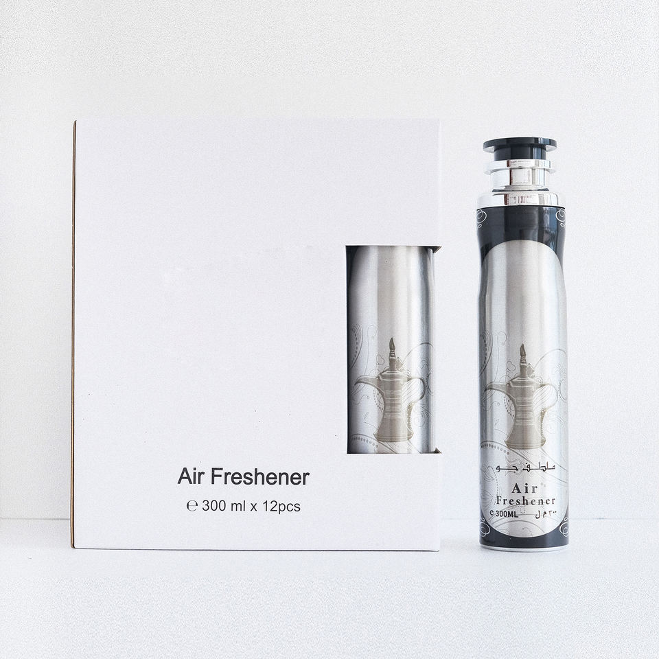 ขวดสเปรย์อลูมิเนียมโลหะขนาด 300 มล. สำหรับน้ำหอมปรับอากาศและระงับกลิ่นกาย แบบเป็นมิตรต่อสิ่งแวดล้อม สไตล์อาหรับตะวันออกกลาง