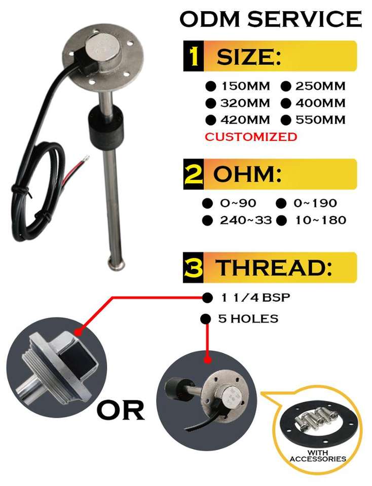 300มม.สแตนเลสสตีล Marine รถบรรทุกรถถังน้ำมันเชื้อเพลิงระดับ Sensor