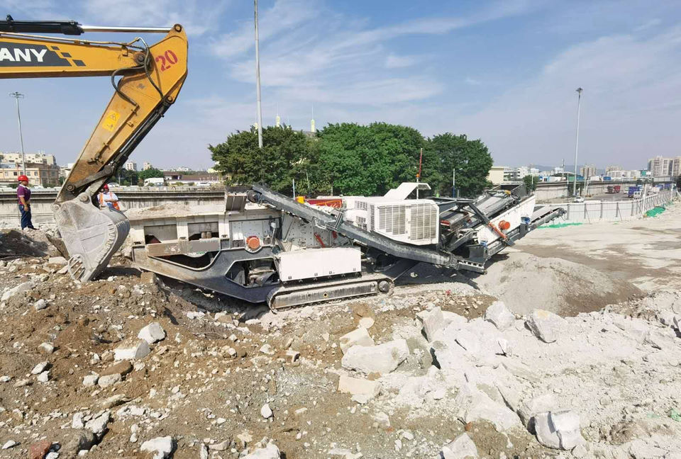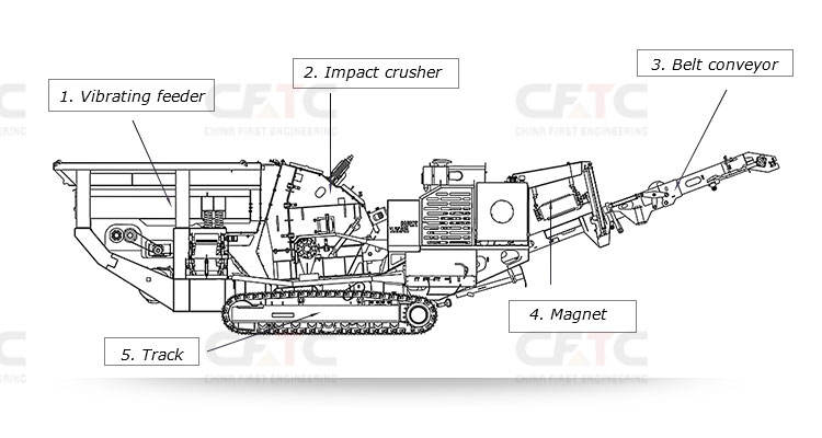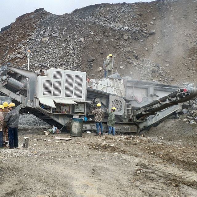 เครื่องบดหินแบบเคลื่อนที่ชนิดตีนตะขาบ 300 ตัน/ชม. เครื่องบดหินอ่อนแบบเคลื่อนที่ชนิดตีนตะขาบ เครื่องบดหินแบบตีนตะขาบ