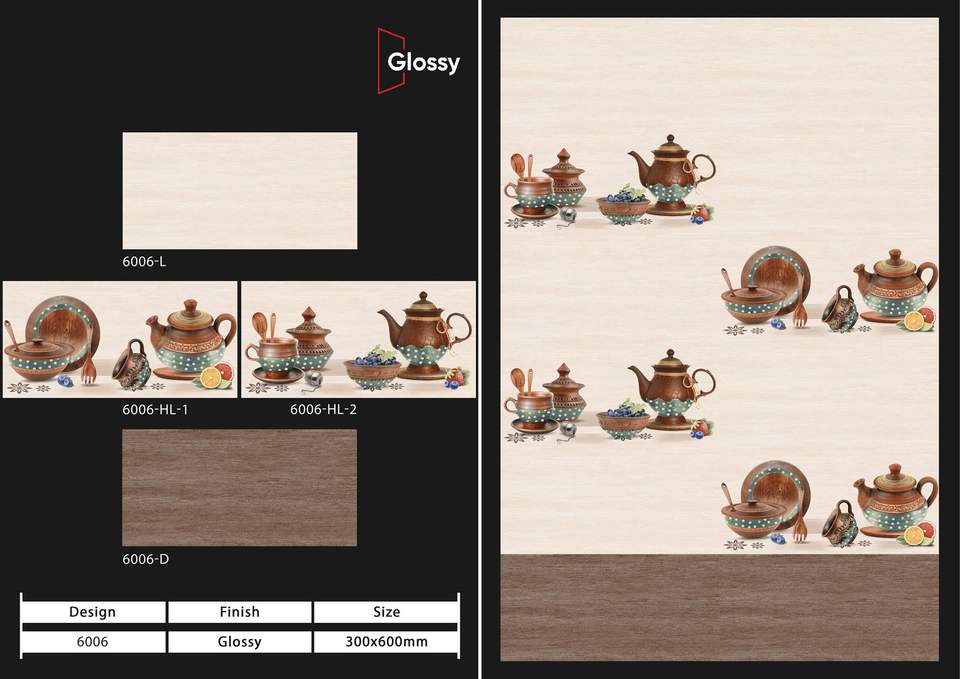 ชุดครัวกันลื่นและต้านเชื้อแบคทีเรียขนาด300X600มม. พร้อมพื้นผิวมันวาวสำหรับใช้ภายใน