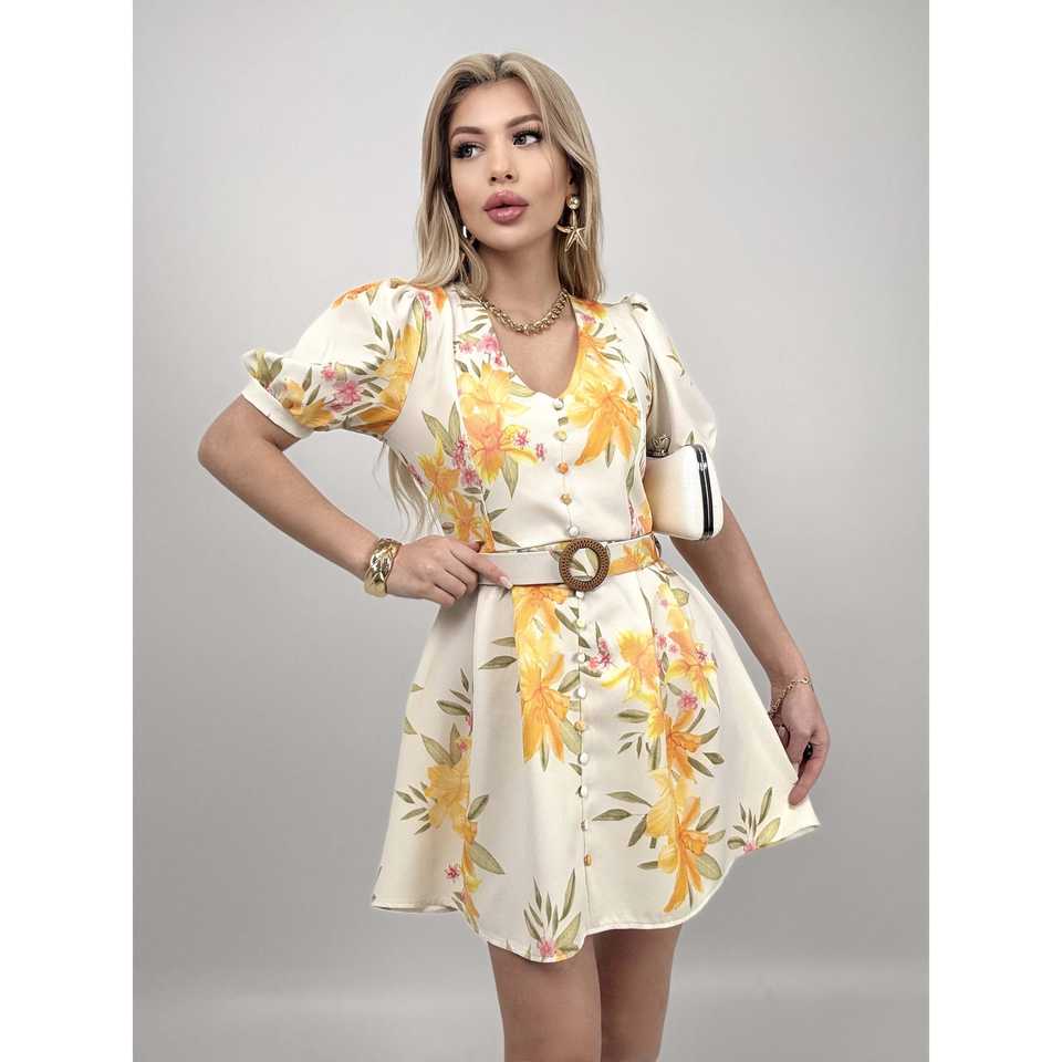 เดรสทรงเอพิมพ์ลายดอกไม้ คอวี เอวธรรมชาติ ผ้าทอ ระบายอากาศได้ดี สวมใส่สบายๆ ในชีวิตประจำวัน