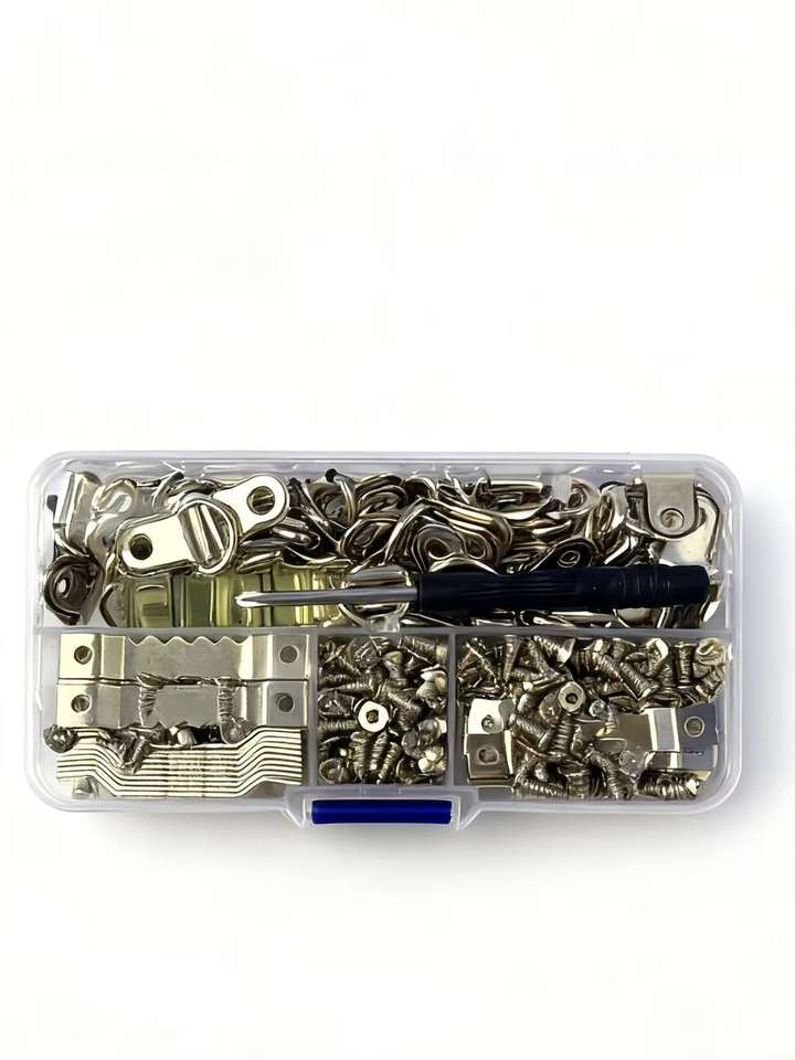 ชุดตะขอเกี่ยวแบบมีฟันเลื่อย 302 ชิ้น ตะขอแขวนรูปภาพ กรอบรูป ตะขอรูปตัว D ชุดสกรู อุปกรณ์ฮาร์ดแวร์สำหรับใช้ในบ้าน