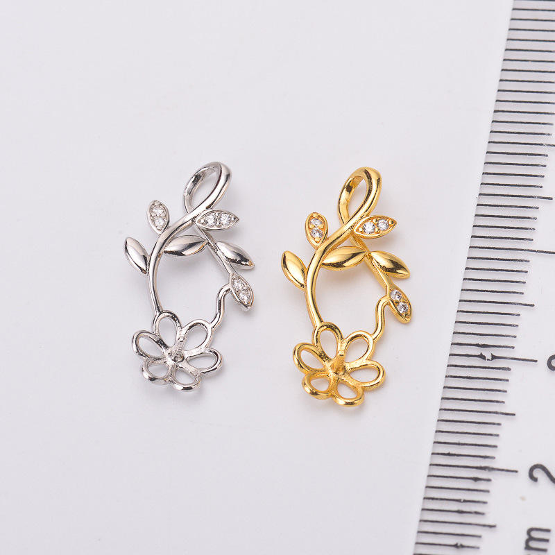 จี้เงินแท้ S925 รุ่น 30378 สำหรับทำเครื่องประดับมุก DIY พร้อมฐานเปล่าสำหรับใส่ลูกปัดกลมขนาด 10-12 มม. และจี้สร้อยคอรูปใบไม้แฟชั่น
