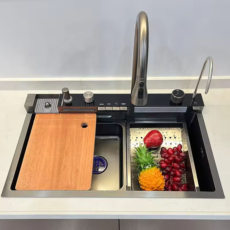 304 Bowl Undermount Stainless Steel Apron Farmhouse Handmade Smart Waterfall Multifunction Kitchen Sink