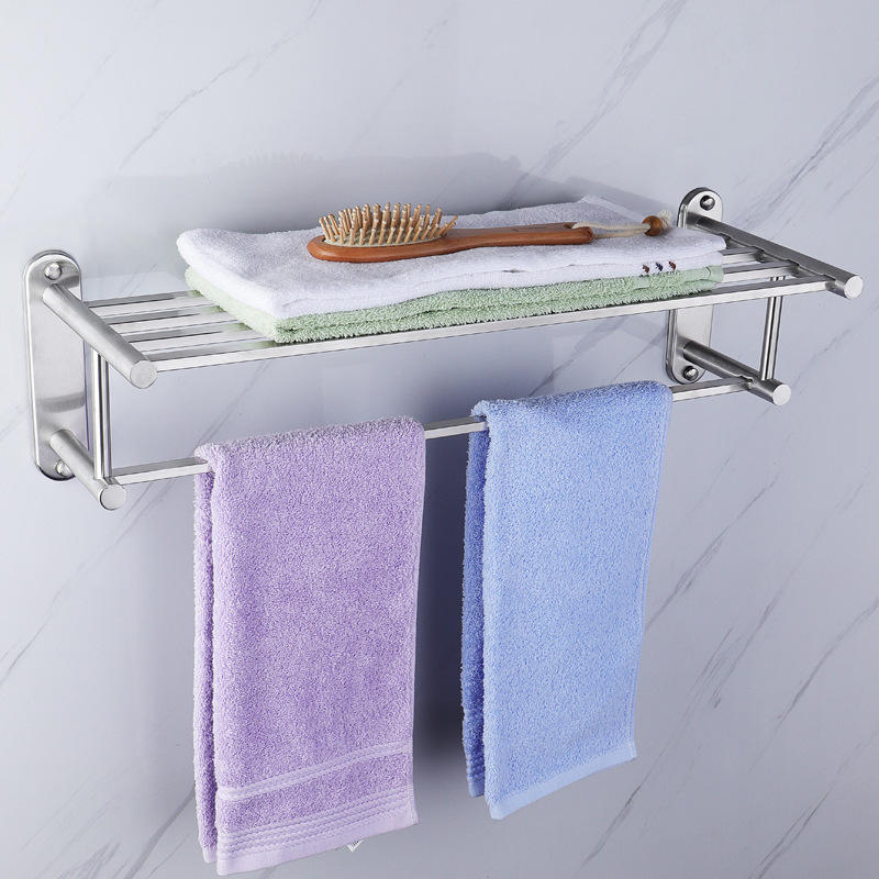 ชั้นวางผ้าขนหนูสแตนเลส2ชั้นแบบ304ที่ทันสมัยสำหรับบ้านและโรงแรมห้องน้ำแบบจี้