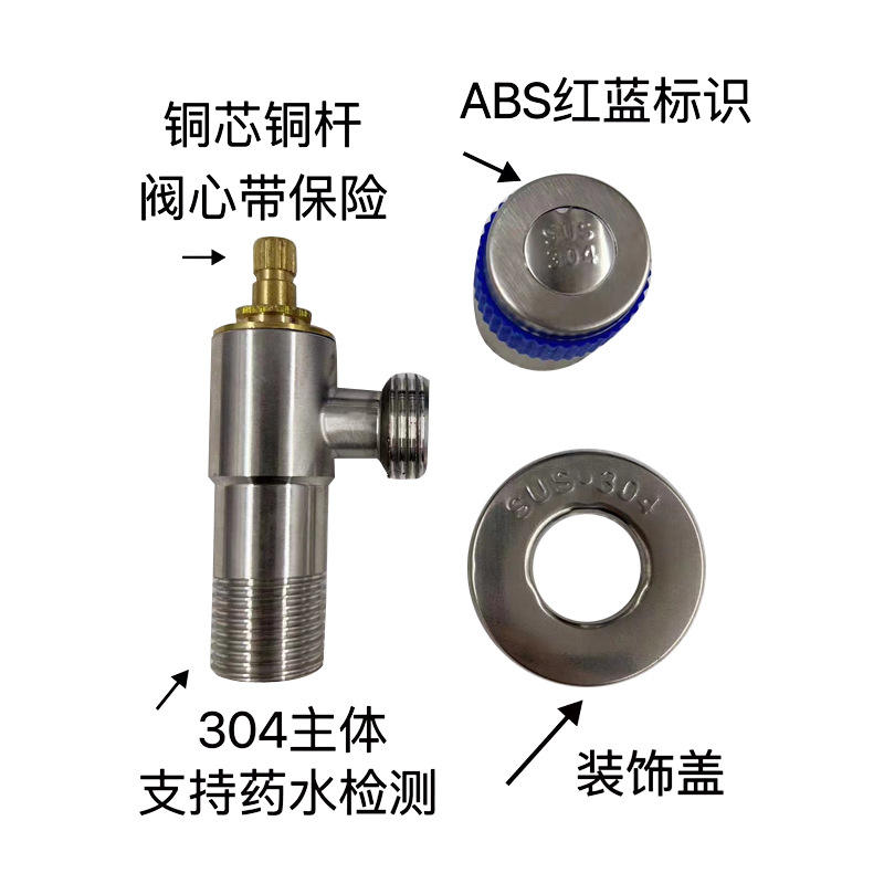 วาล์วปรับมุมสแตนเลส 304 ขนาด 1/4 นิ้ว พร้อมด้ามจับสีน้ำเงิน วาล์วปิดน้ำสำหรับโถสุขภัณฑ์