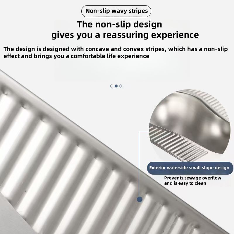 อ่างสแตนเลส304ป้องกันกลิ่นกระโถนคาราโอเกะดีไซน์ทันสมัยสำหรับนั่งยองห้องน้ำสาธารณะพร้อมบาร์ส้วมที่มีหลุมนั่งยอง