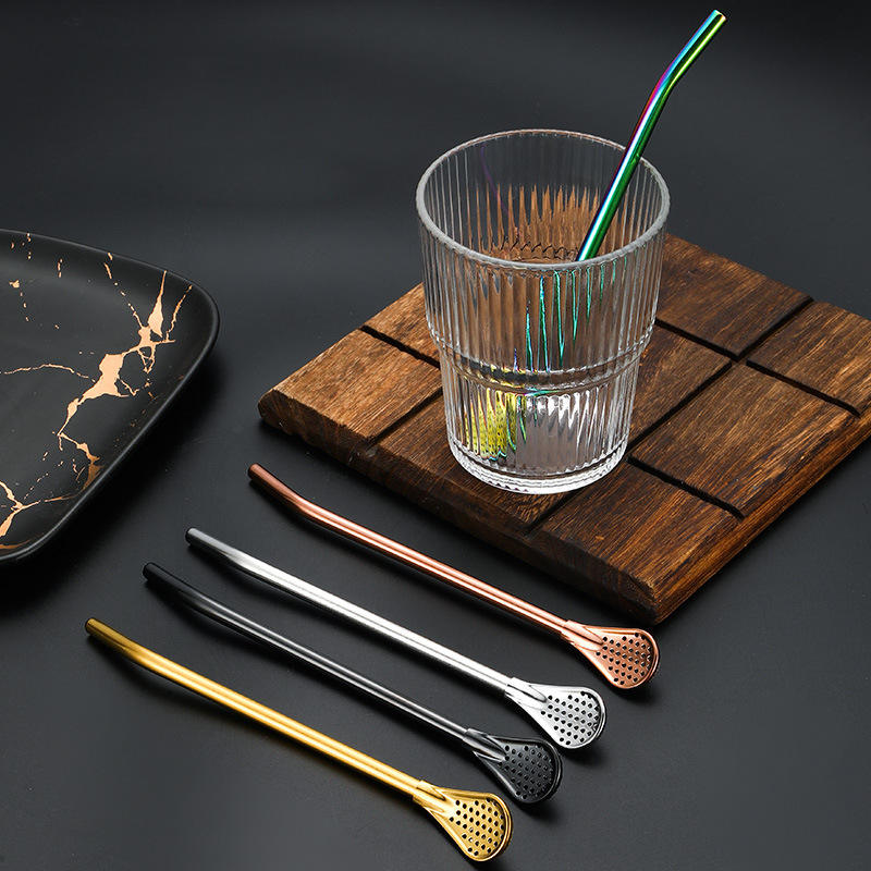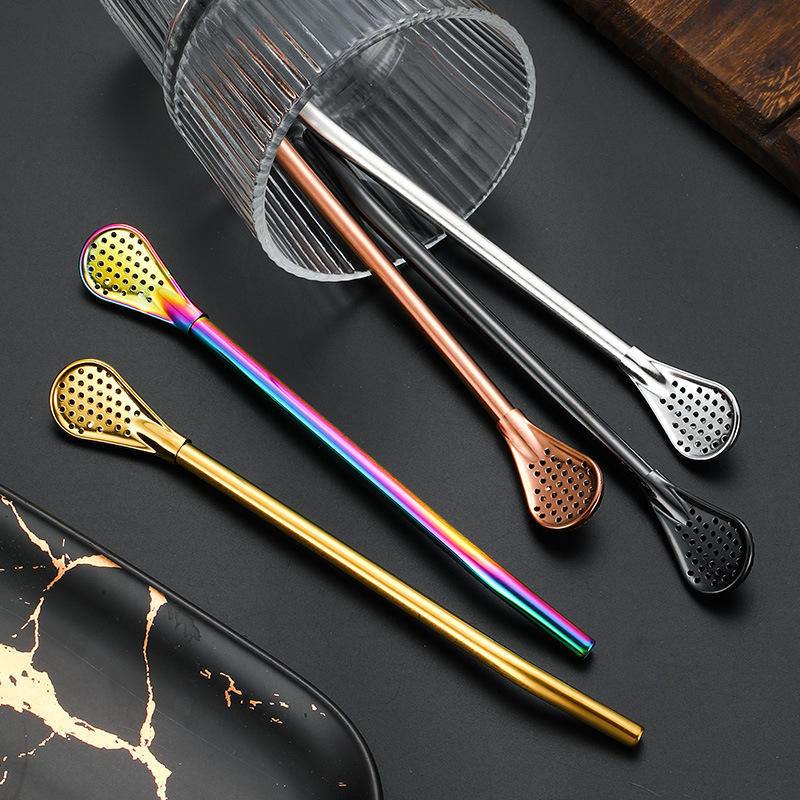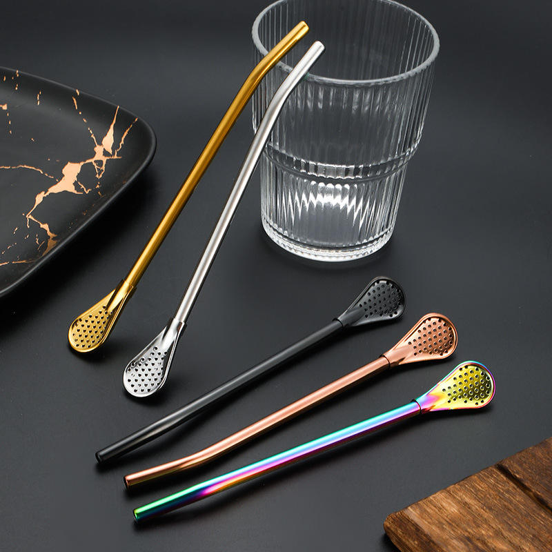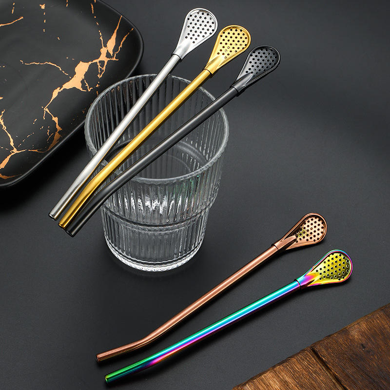 ช้อนกรองสแตนเลส 304 แบบโค้งงอได้สำหรับกาแฟชาผลไม้พร้อมหัวกรองแบบมีรู ความยาว 21 ซม.