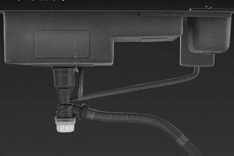 อ่างล้างจานสแตนเลส 304 สีดำนาโน ลายนูน พร้อมร่องคู่และช่องสำหรับเครื่องล้างจาน