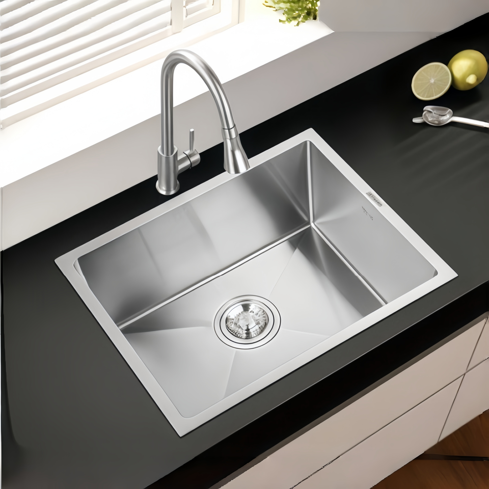 อ่างล้างจานครัวแบบฝังใต้เคาน์เตอร์ สเตนเลส 304 ขัดเงา ชามเดี่ยว ป้องกันรอยขีดข่วน แข็งแรง ทนทาน