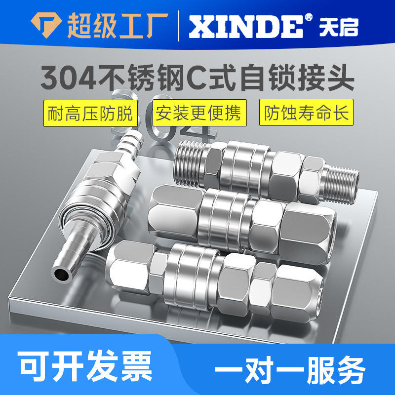 ข้อต่อท่อแบบล็อคตัวเองชนิด C ทำจากสแตนเลส 304 ทนความร้อนสูง ทนแรงดันสูง สำหรับคอมเพรสเซอร์อุตสาหกรรม