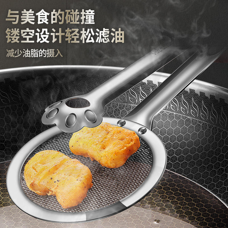 ที่กรองเศษอาหารรูปอุ้งเท้าแมว ทำจากสแตนเลส 304 แบบหนีบ ขยายได้ โปร่ง สำหรับทอด ต้ม ตุ๋น ทนความร้อน