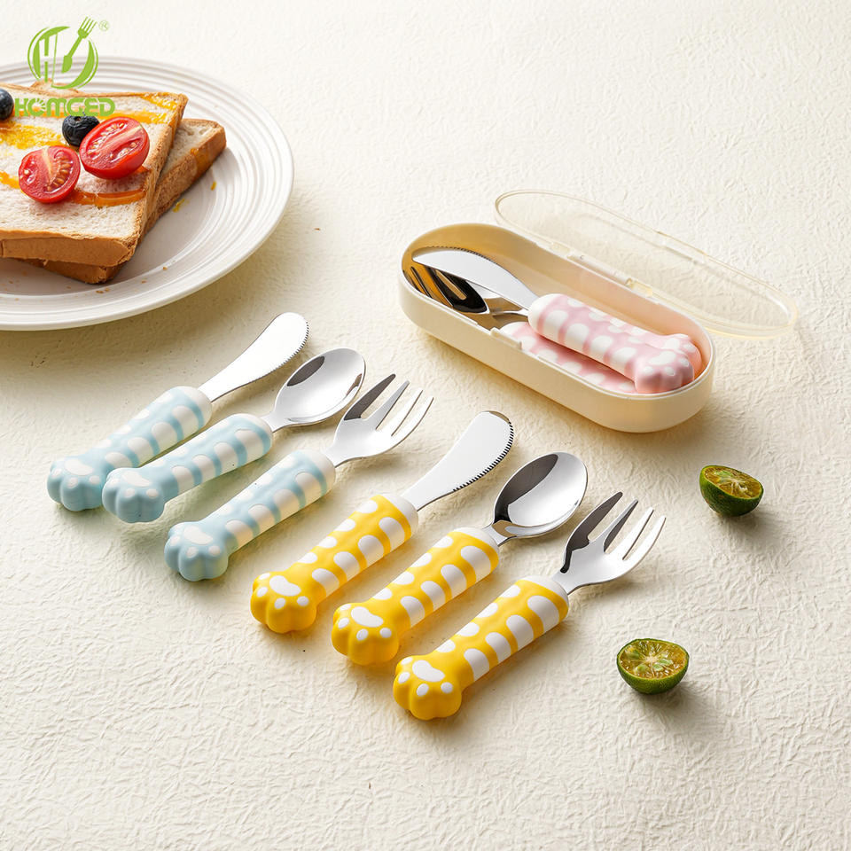 ส้อมมีดและช้อนสำหรับเด็กทำจากสเตนเลสสตีลใช้304ได้เป็นมิตรกับสิ่งแวดล้อมด้ามจับอุ้งเท้าแมวสุดสร้างสรรค์