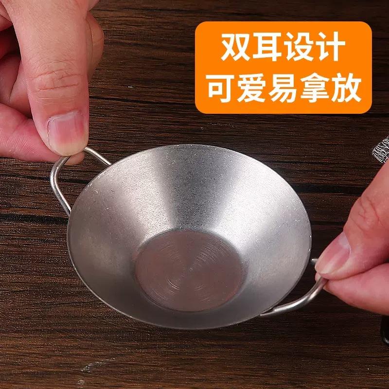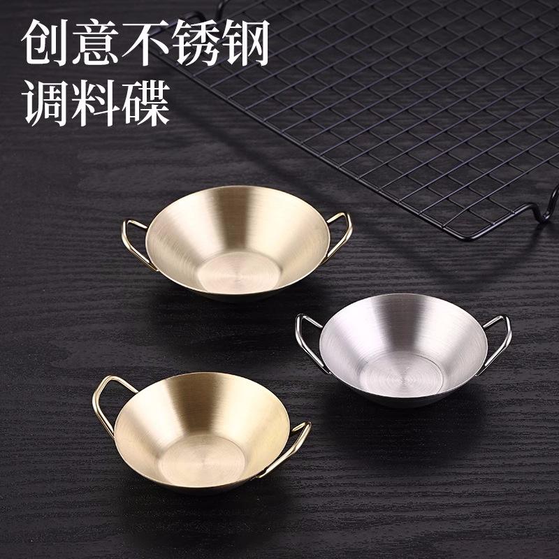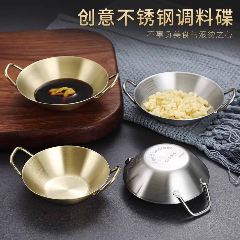 จานใส่เครื่องปรุงรสสแตนเลส 304 พร้อมที่จับทรงกลมสีทึบสำหรับใช้ในงานปาร์ตี้ซอสถั่วเหลือง