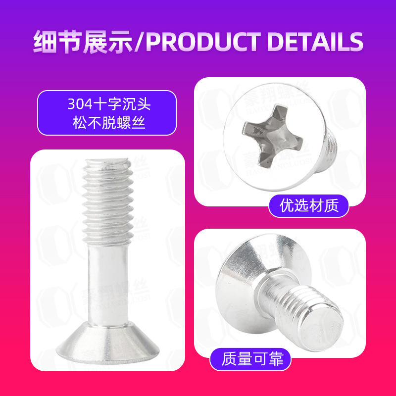 สกรูหัวจมแบบไขว้ สแตนเลส 304 ไม่หลุด แบน ครึ่งเกลียว M2.5/M4/M6/M8