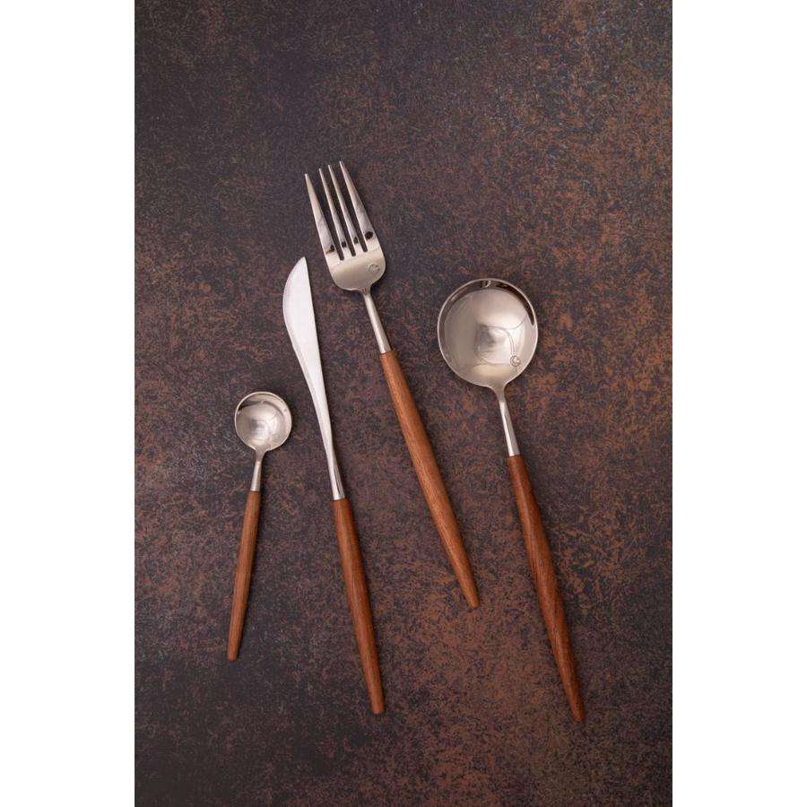 ชุดช้อนส้อมสแตนเลส 304 พร้อมด้ามไม้ไผ่ เกรดสำหรับอาหาร เหมาะสำหรับร้านอาหาร ใช้สำหรับรับประทานอาหารบนโต๊ะอาหาร