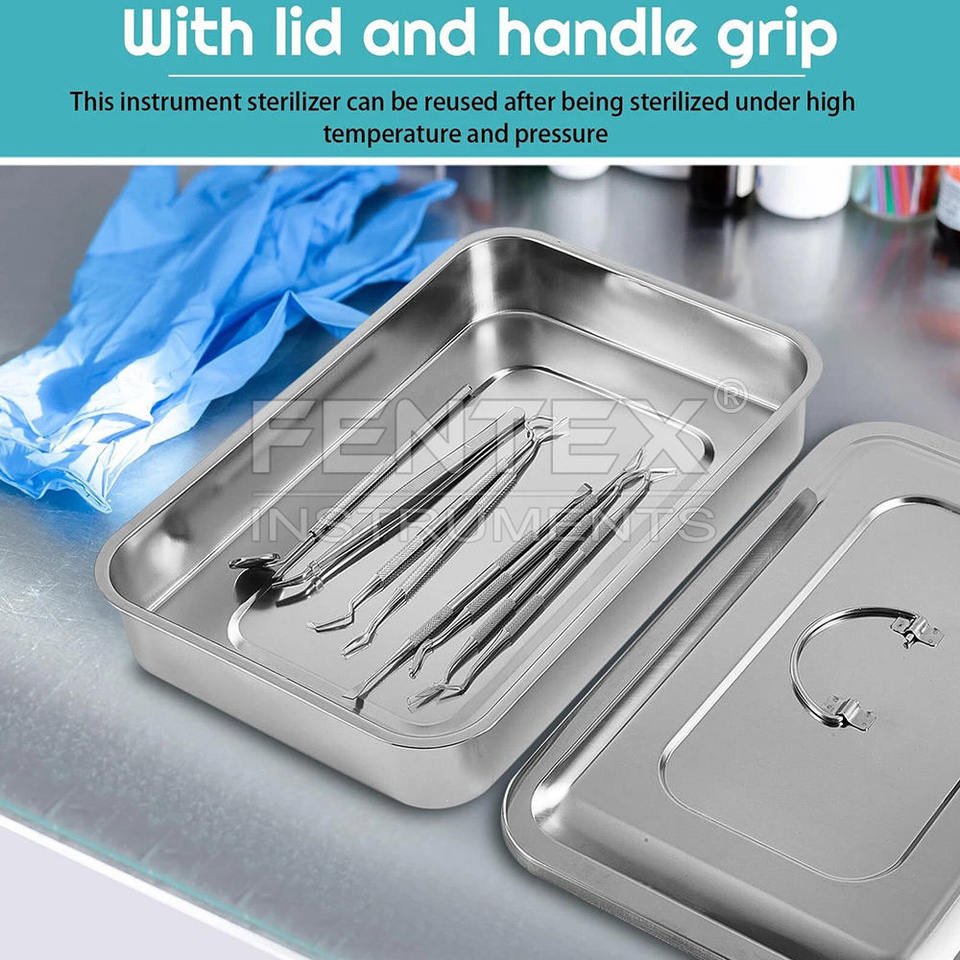 กล่องเก็บเครื่องมือแพทย์สำหรับผ่าตัดทางทันตกรรม ทำจากสแตนเลส 304 พร้อมถาดจัดระเบียบ ฝาปิด และที่จับแบบแมนนวล