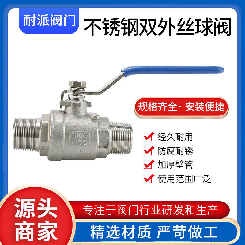 บอลวาล์วสแตนเลส 304 เกลียวภายนอกสองชั้น แบบสองชิ้น ฟูลบอร์ เกรดอาหาร ปลอดภัย แบบสองทาง